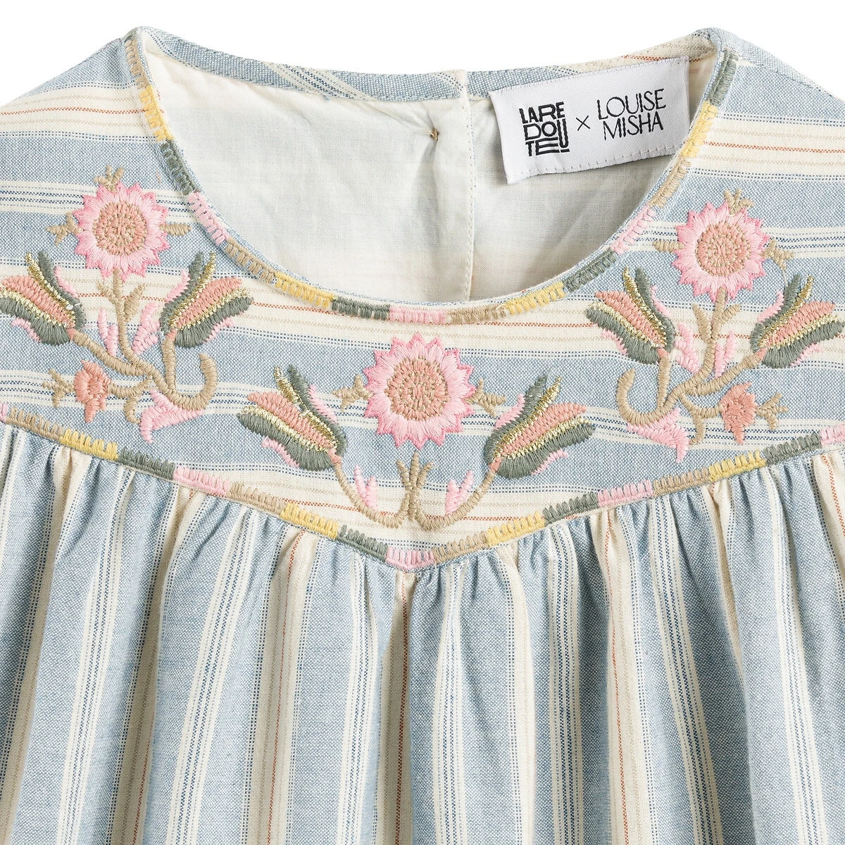 • Motif floral brodé poitrine et rayures