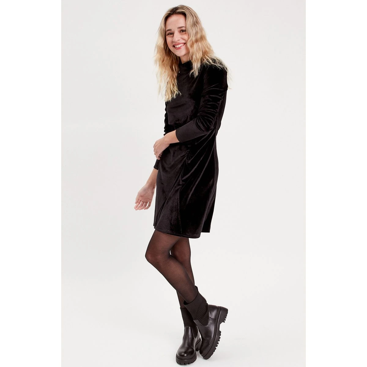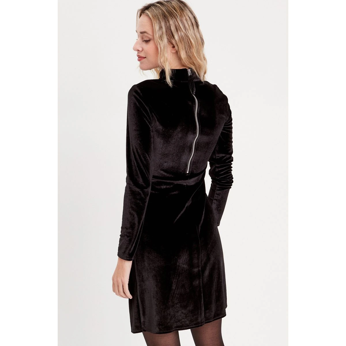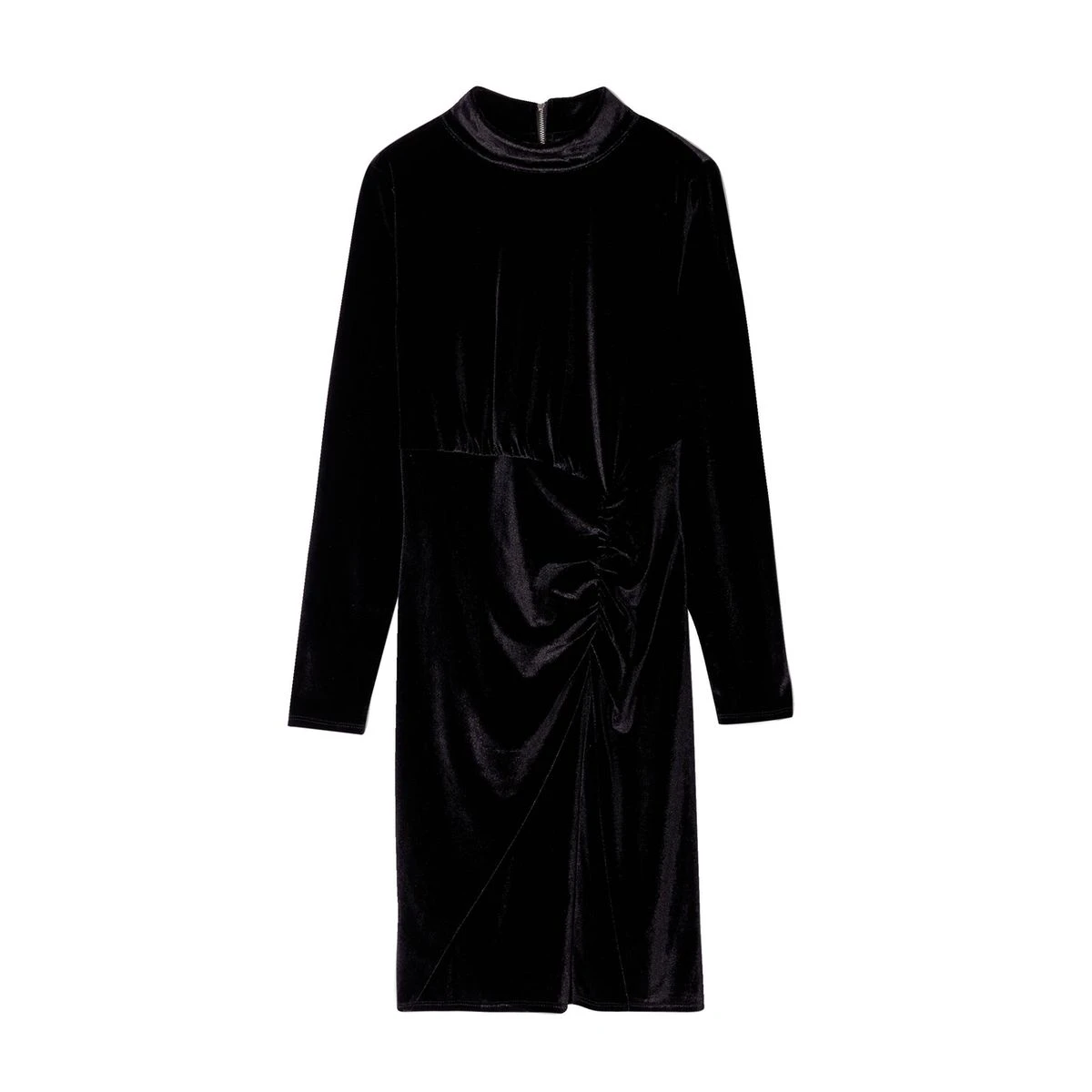 Détails produit Coupe moulante Courte Col montant Manches longues Fermeture zippée dans le dos Aspect velours Fronces sur l’avant Le + mode : ses fronces