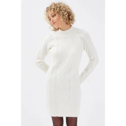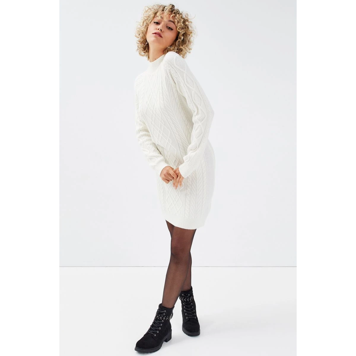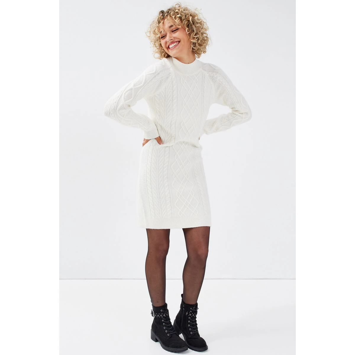 Robe pull droite avec torsades Coupe droite Courte Col montant Manches longues Détails torsades Bord-côte aux poignets, au col et sur le bas de la robe Le + mode : ses torsades