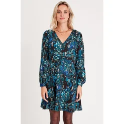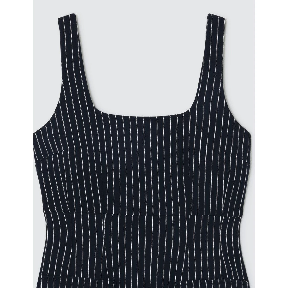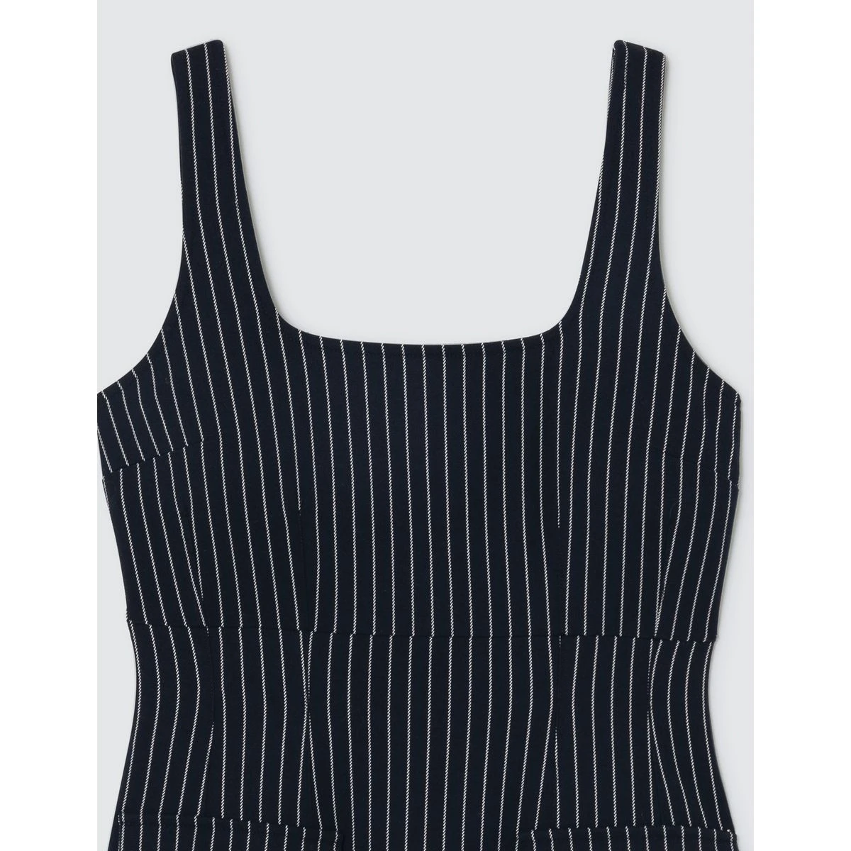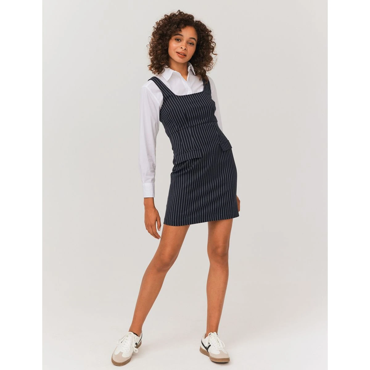 Robe courte rayée – Bretelles – 2 poches passepoilées à l’avant – Pinces au niveau de la poitrine – Fermeture par zip invisible – Plis sur l’arrière de la robe TAILLE ET COUPE – Robe évasée – La mannequin porte une taille 36 et mesure 1m77.
