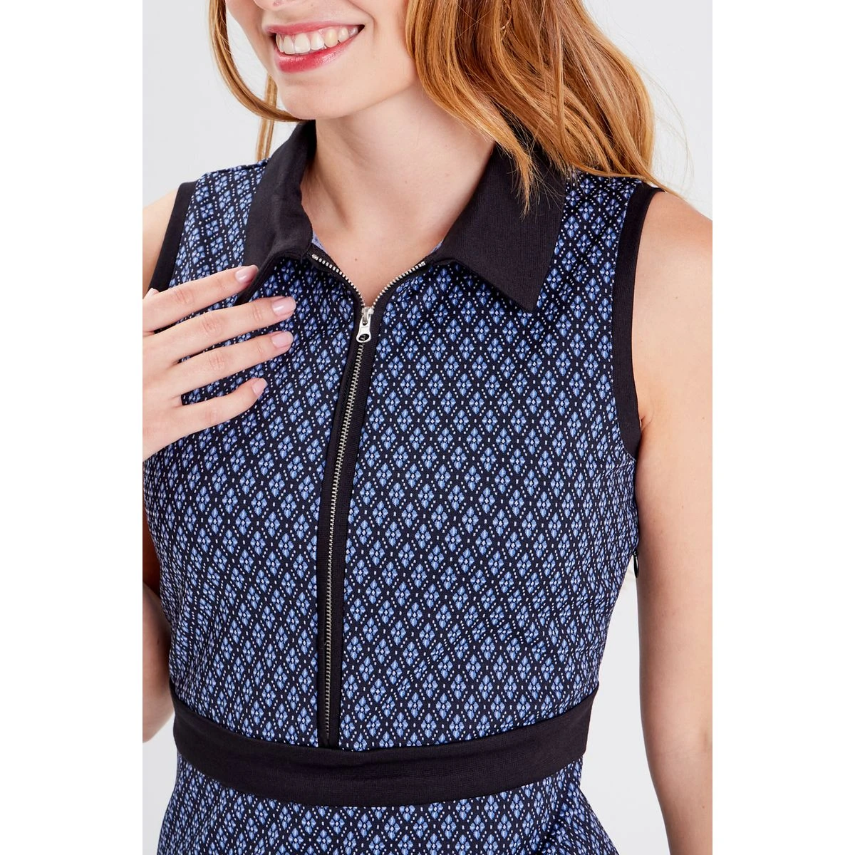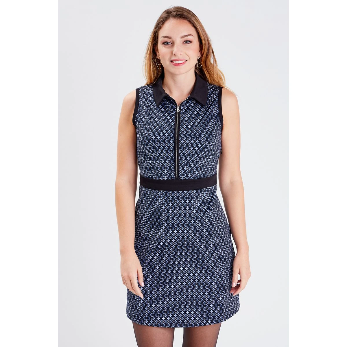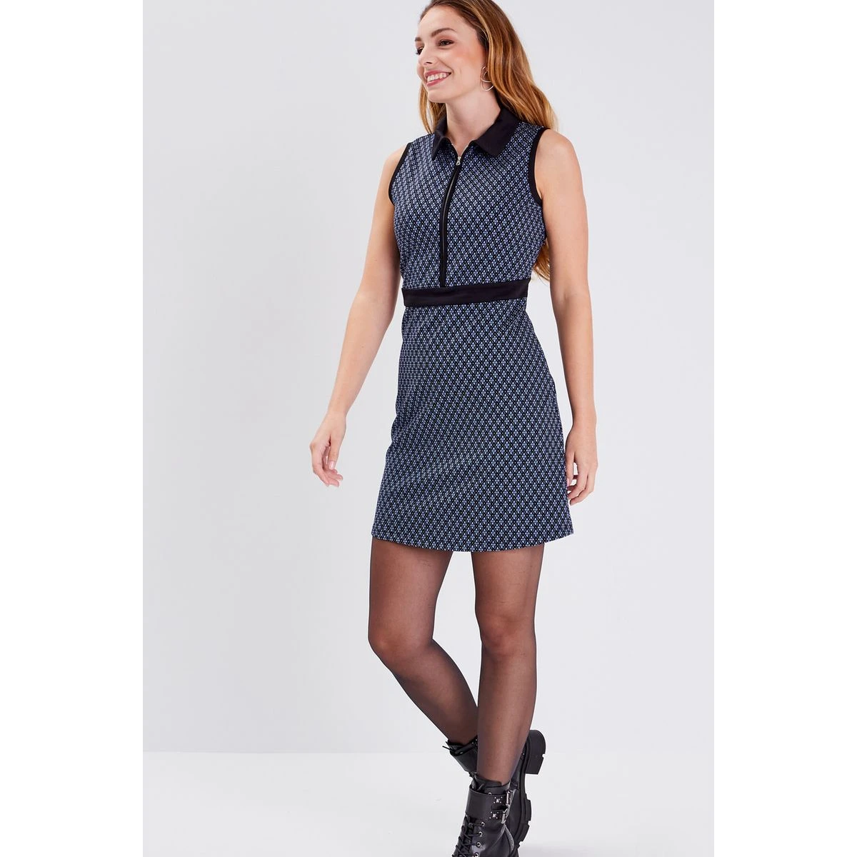 Robe trapèze sans manches Coupe trapèze Courte Col à revers Sans manches Fermeture zippée partielle sur l’avant Bande contrastante à la taille