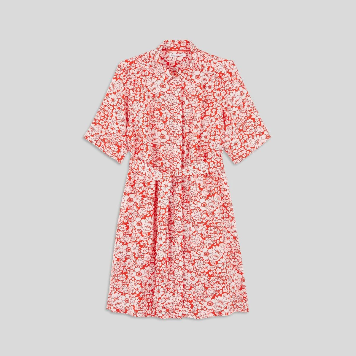 – Robe imprimée fleurie à manches courtes – Col chemise – Fermeture boutonnée sous patte devant – Ceinture à nouer sous passants à la taille – Taille élastiquée – Matière fluide et douce – La fibre de viscose LENZINGÞ ECOVEROÞ est issue des forêts gérées durablement. Elle permet de réduire la consommation d’eau et l’impact sur l’environnement. – Numéro de modèle : T31790116