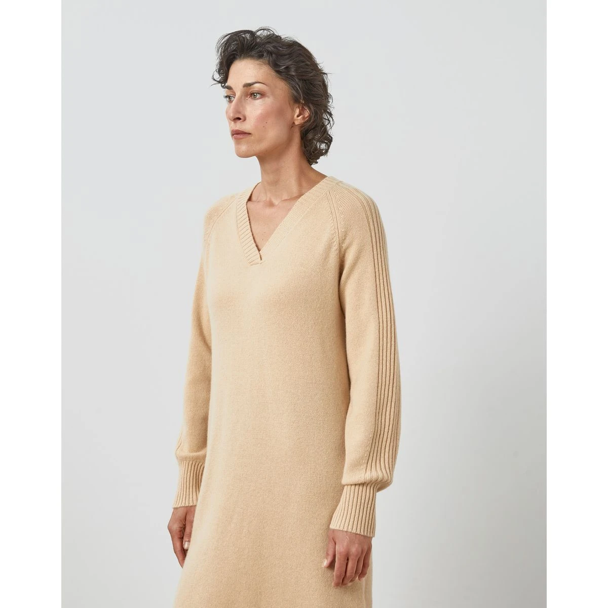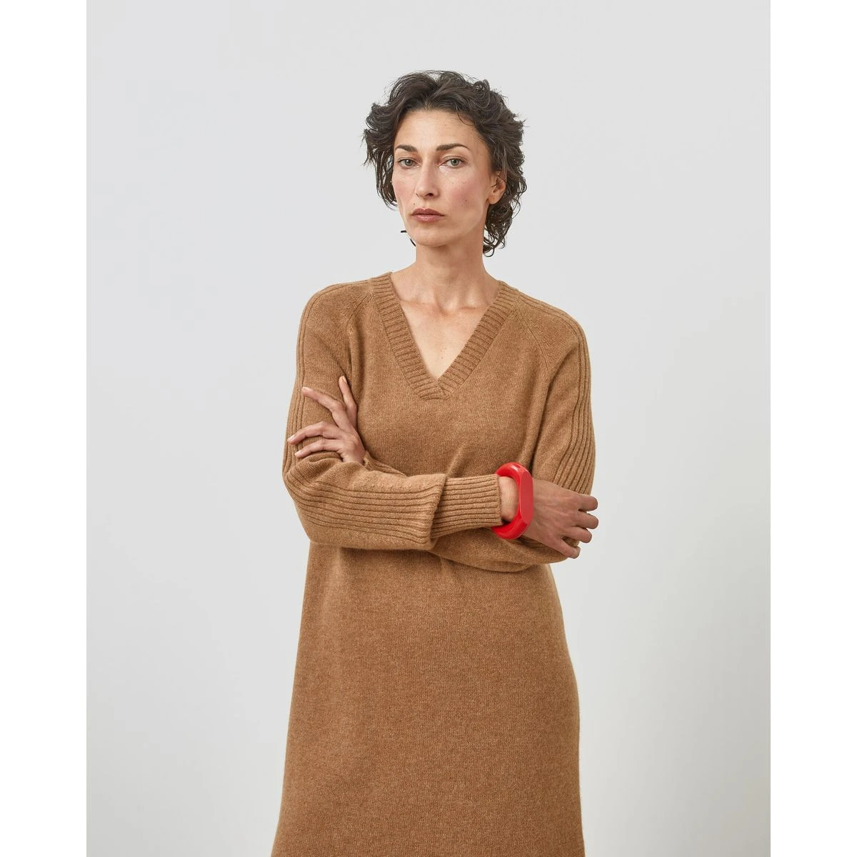 Cette sublime robe longueur midi en 100% cachemire beige chiné est un modèle à avoir dans son dressing cette saison. Craquez pour sa coupe droite qui convient à toutes les morphologies et son col V qui laisse apparaître un léger décolleté. Vous n’allez plus pouvoir vous passer de ce modèle très féminin qui ne se démode pas saison après saison. Portez-la avec le manteau long du même thème ou encore un gilet en maille oversize. Avec un béret ou une grosse écharpe, elle se porte en journée comme en soirée.