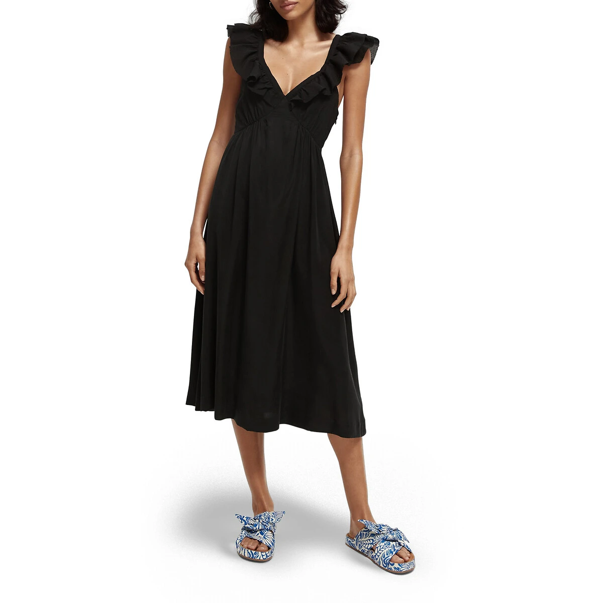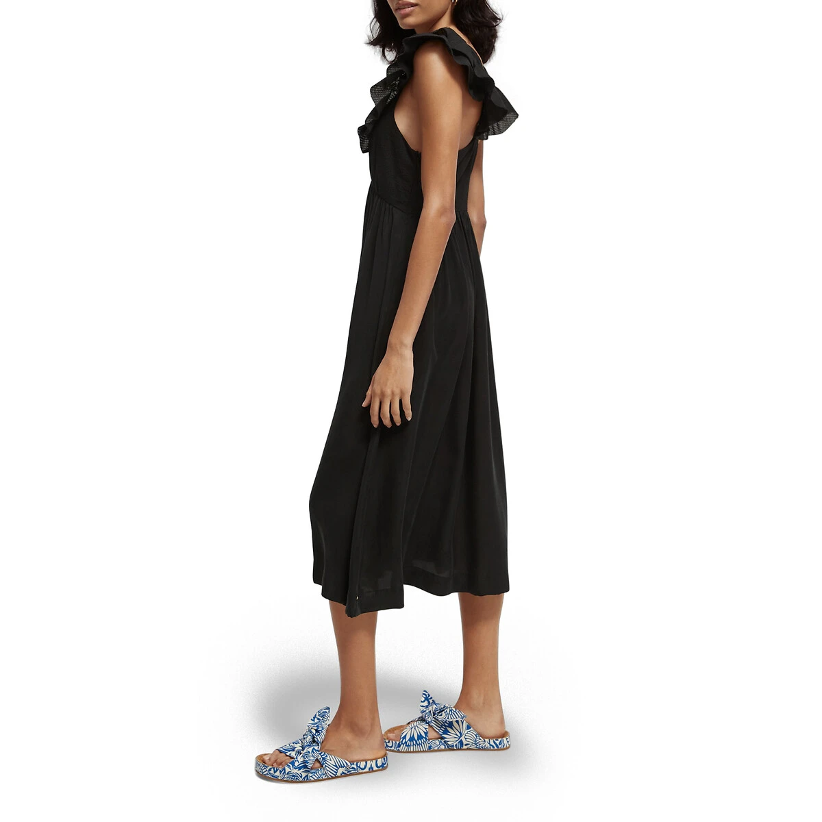 Robe longue volanté à bretelles noir SCOTCH AND SODA