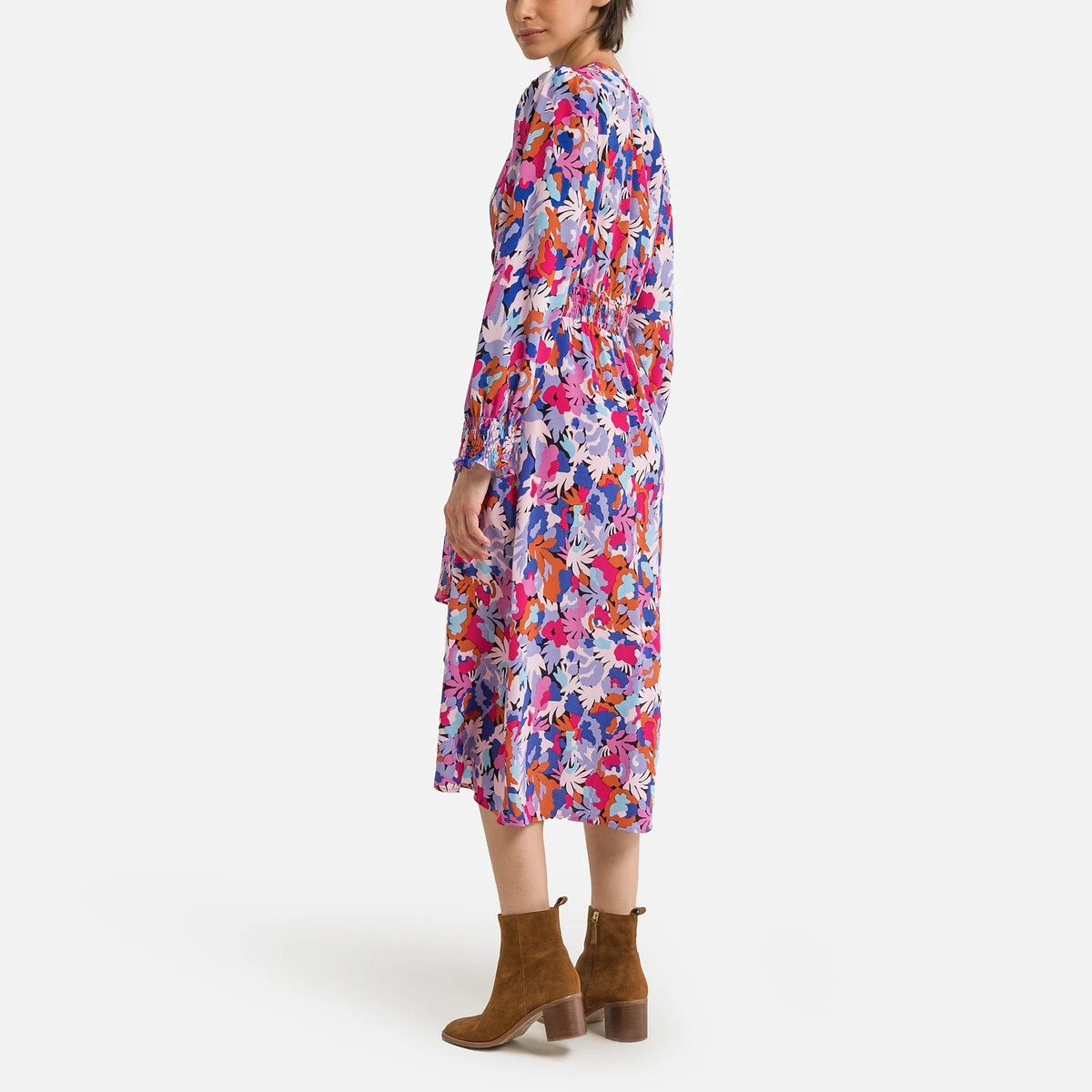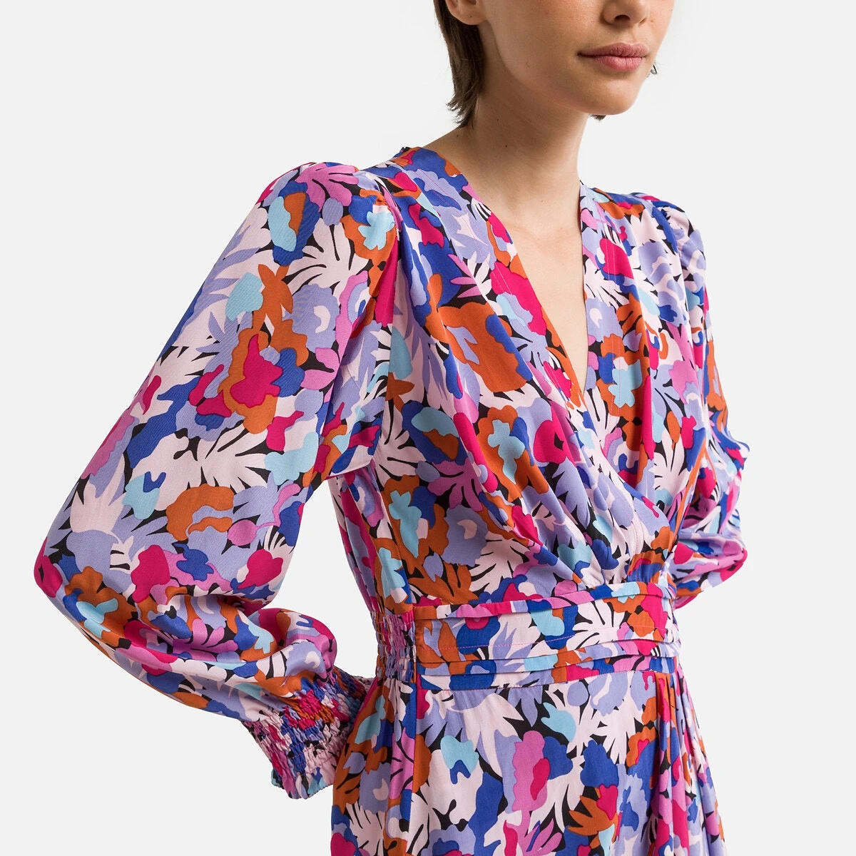 Robe mi longue à fleurs, manches longues CASSIE imprimé rose SUNCOO