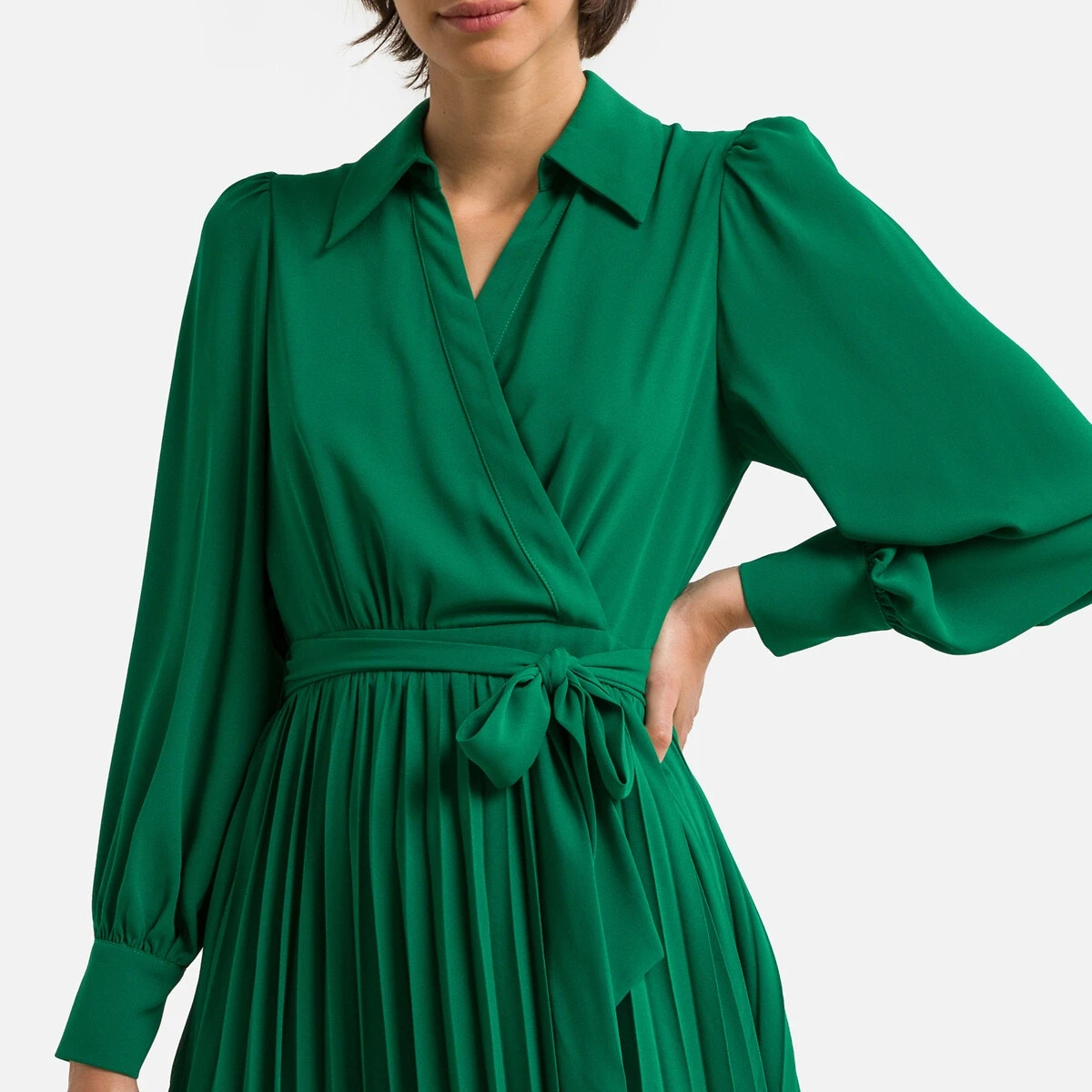 Robe plissée mi-longue, manches longue CRISTAL vert SUNCOO