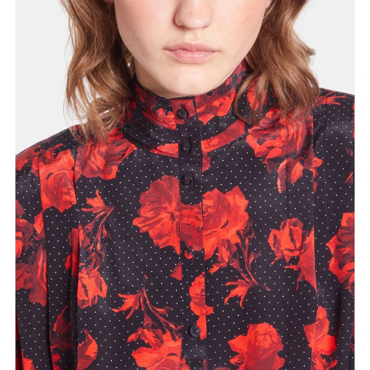 Robe chemise courte imprimée fleur en soie noir THE KOOPLES