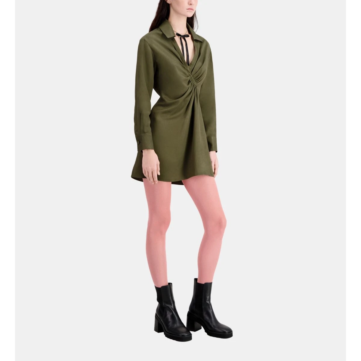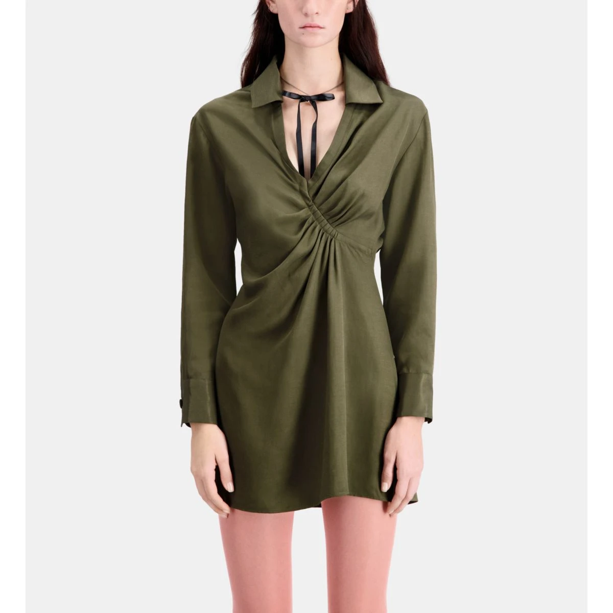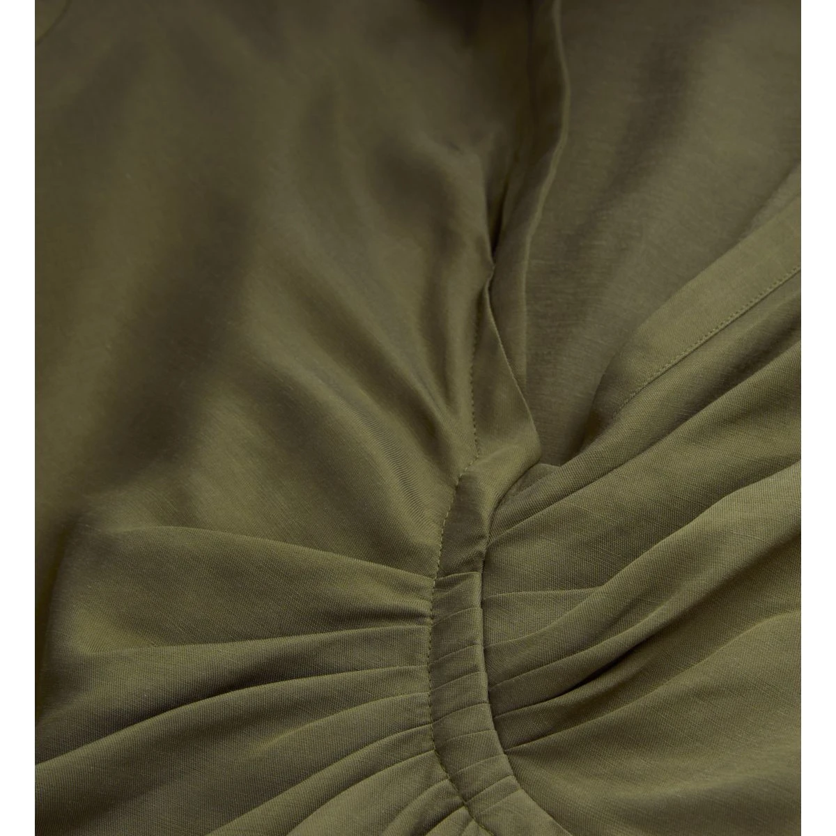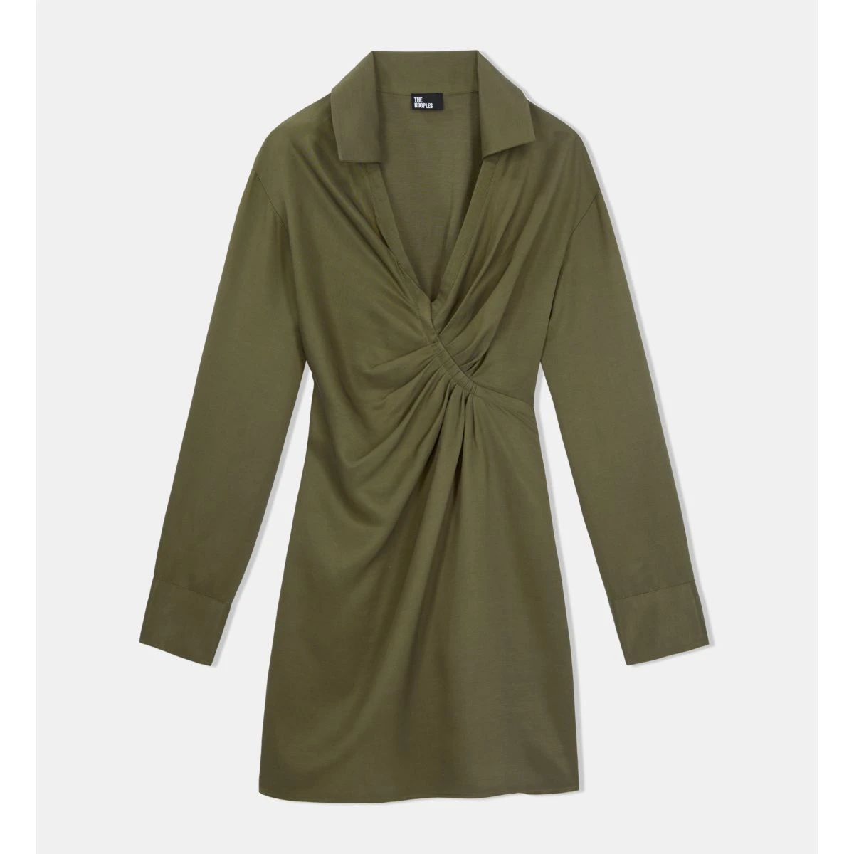 | Décolleté en V | Manches longues | Effet drapé latéral | Taille semi élastiquée | Longueur depuis l’épaule 86,4 cm (pour un 36), ajouter 1,5 cm par taille|