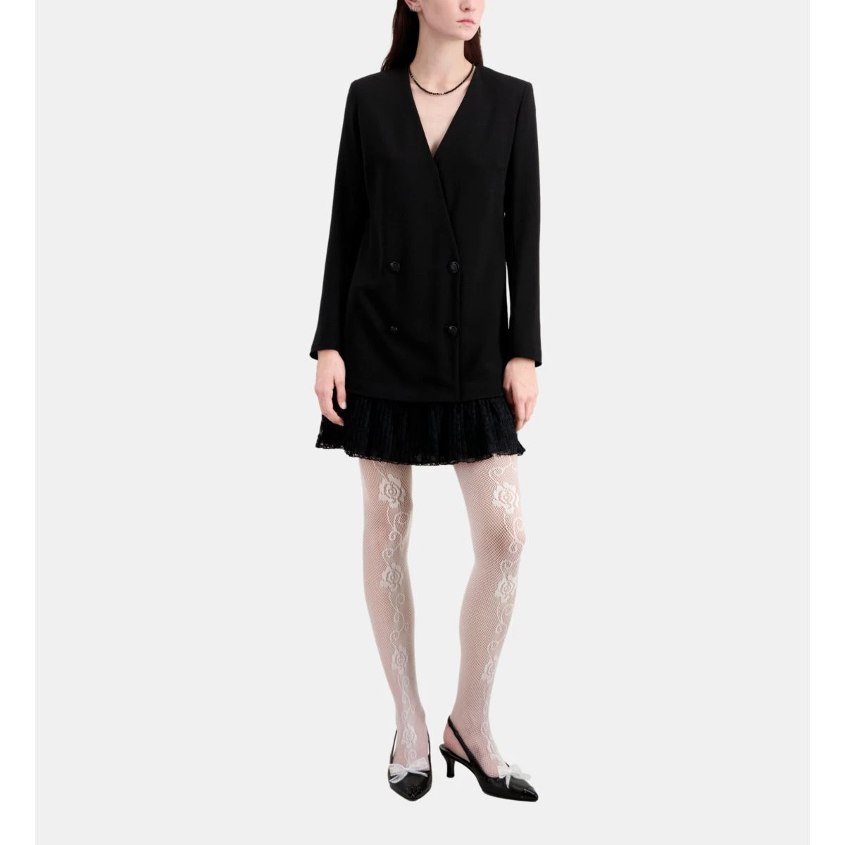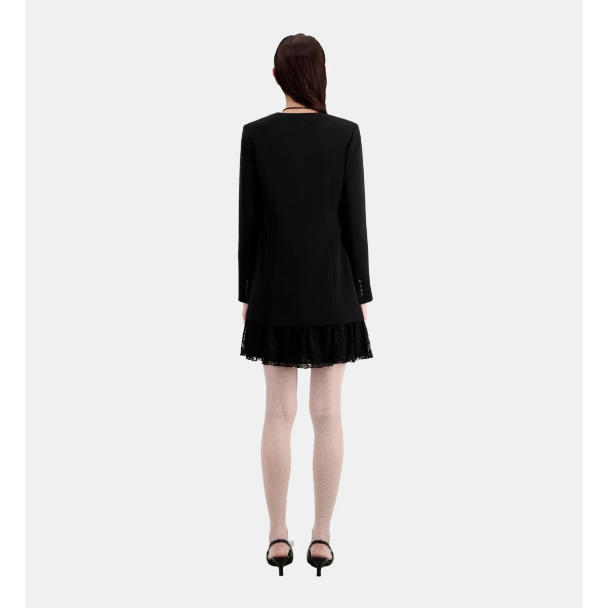 Robe courte effet tailleur en crêpe et dentelle noir THE KOOPLES