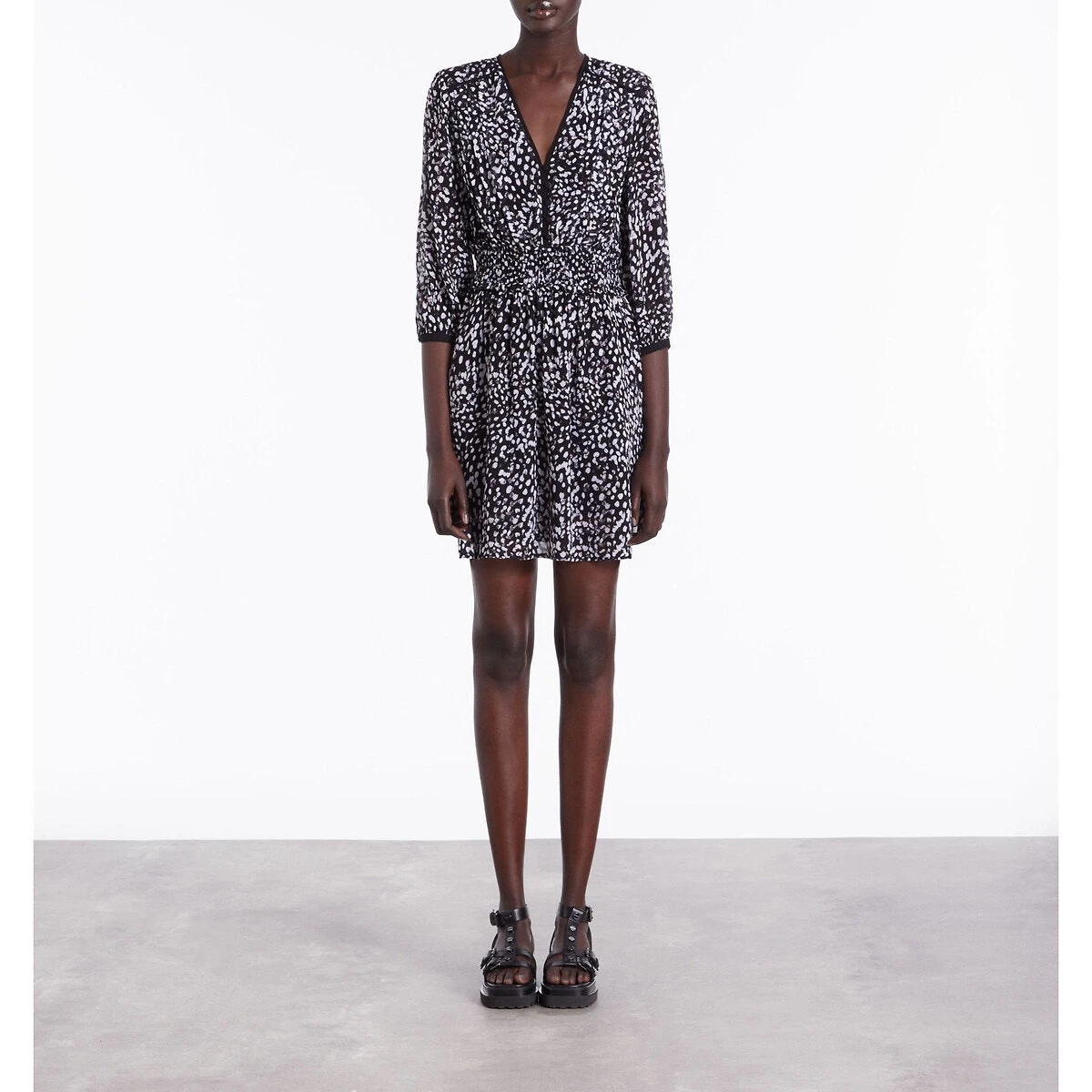 Robe courte imprimée manches 3/4 imprimé noir/blanc THE KOOPLES