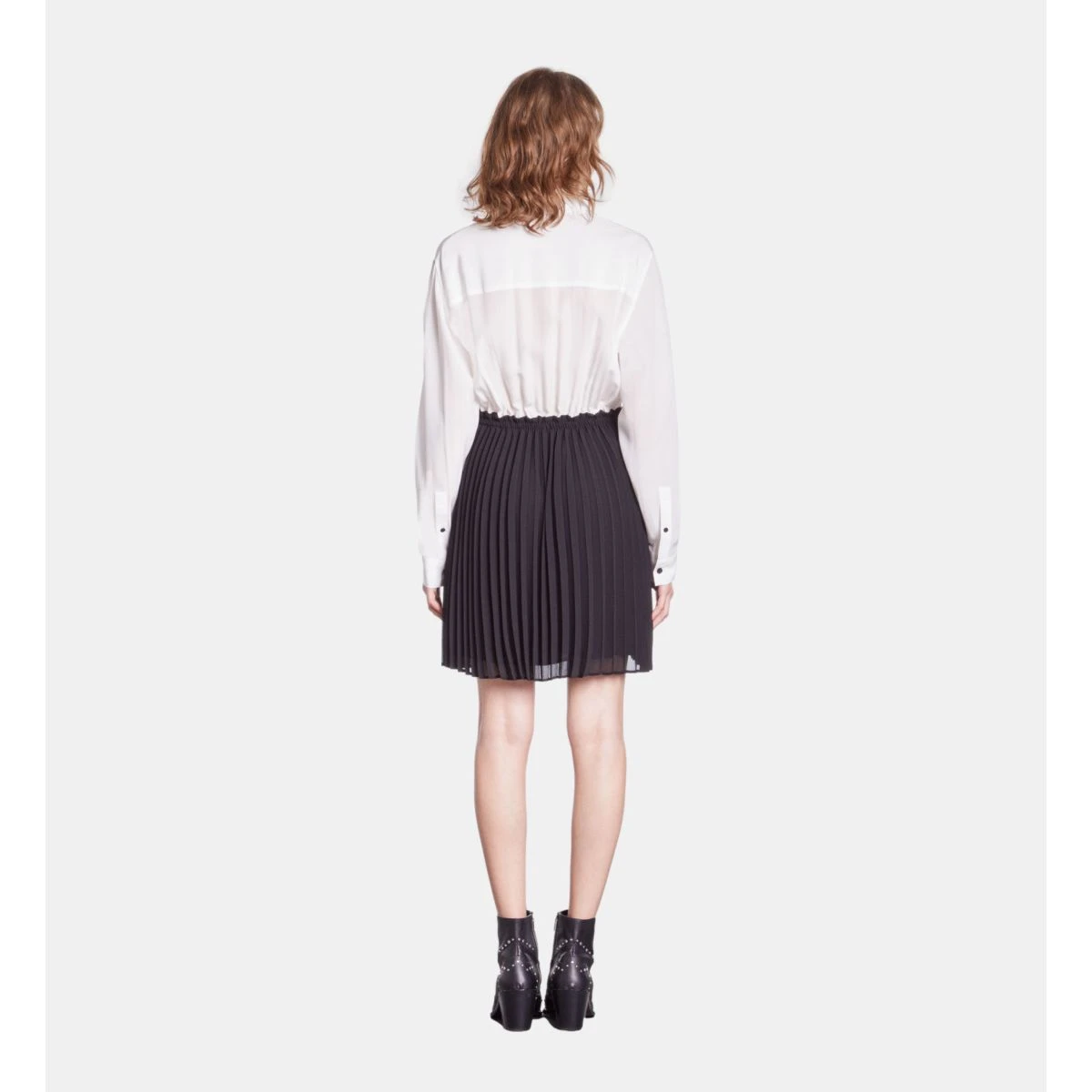 Robe courte plissée soie noir et blanc THE KOOPLES