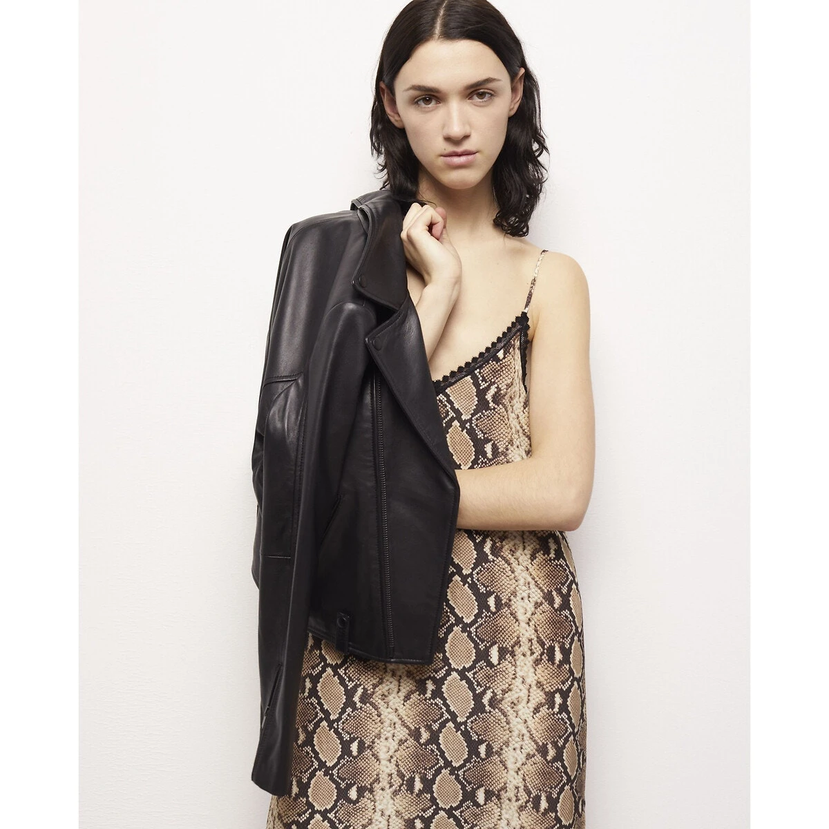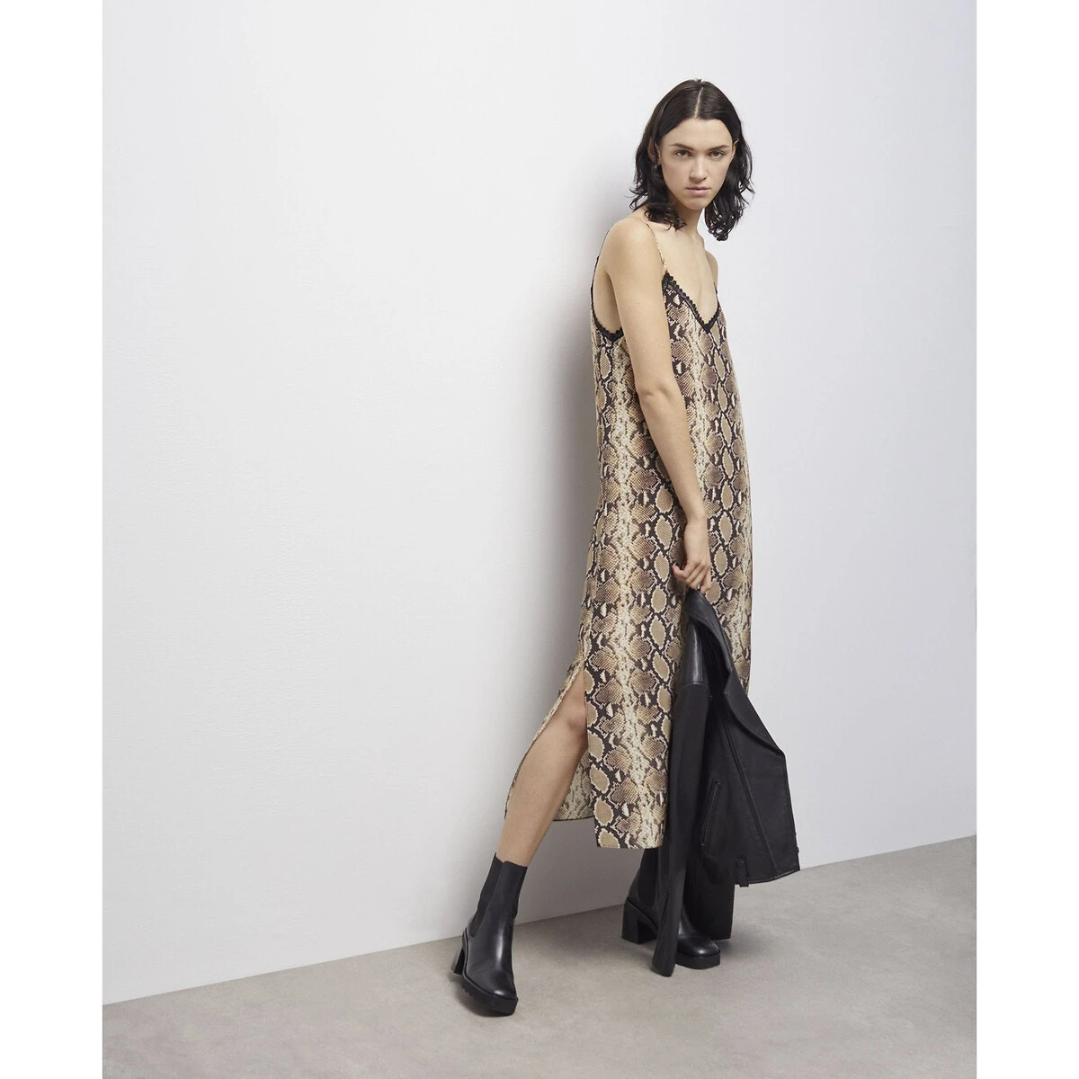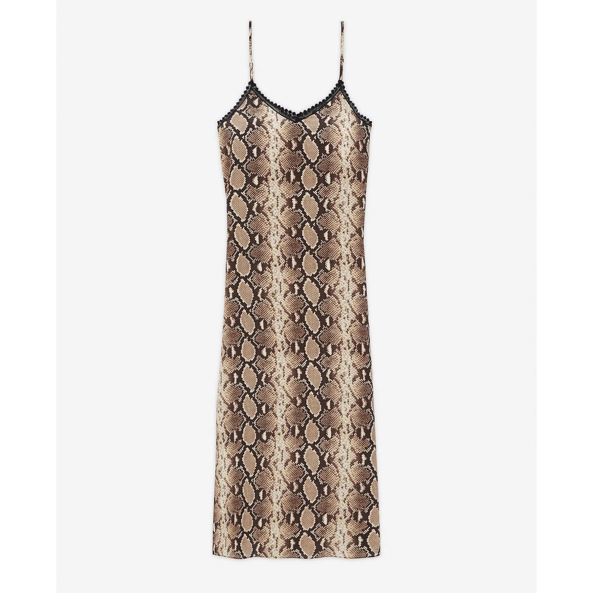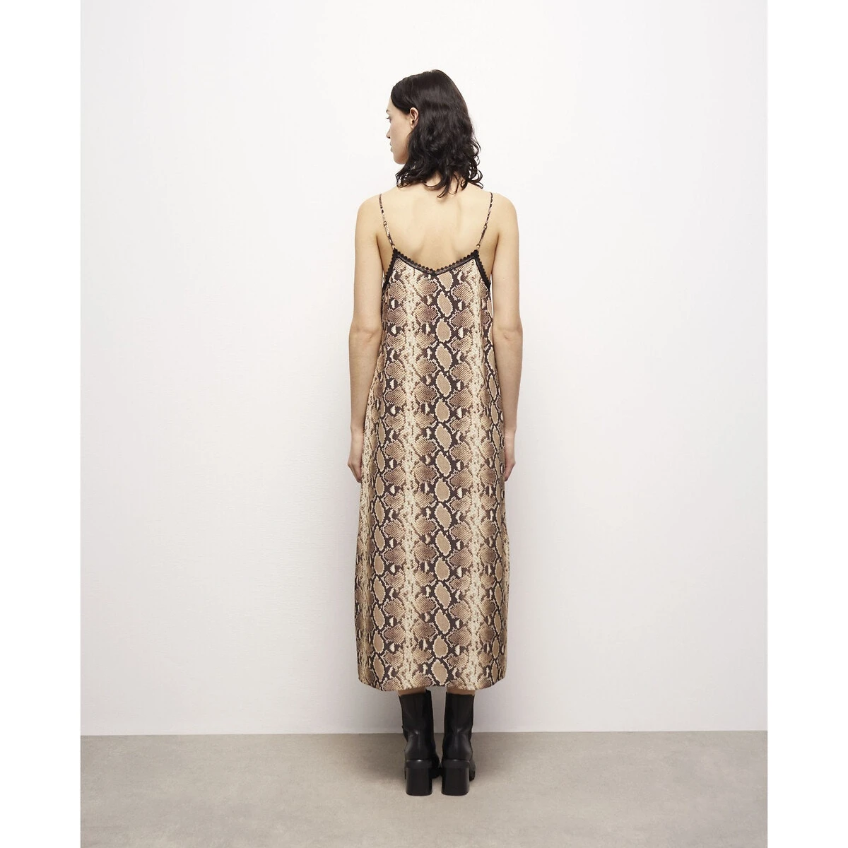 Robe droite en soie, imprimé python imprimé beige THE KOOPLES