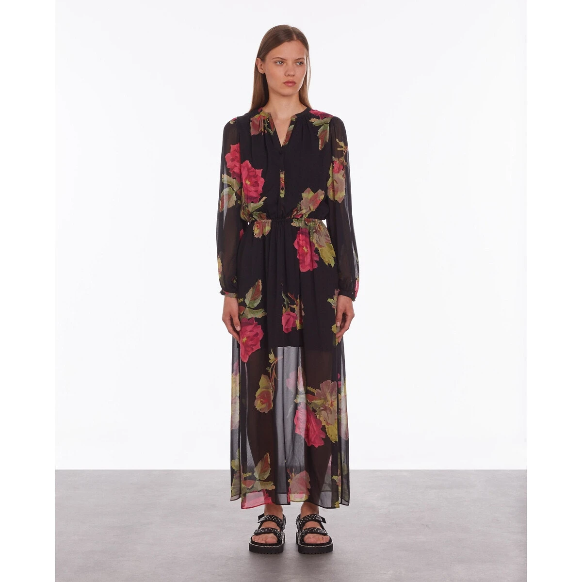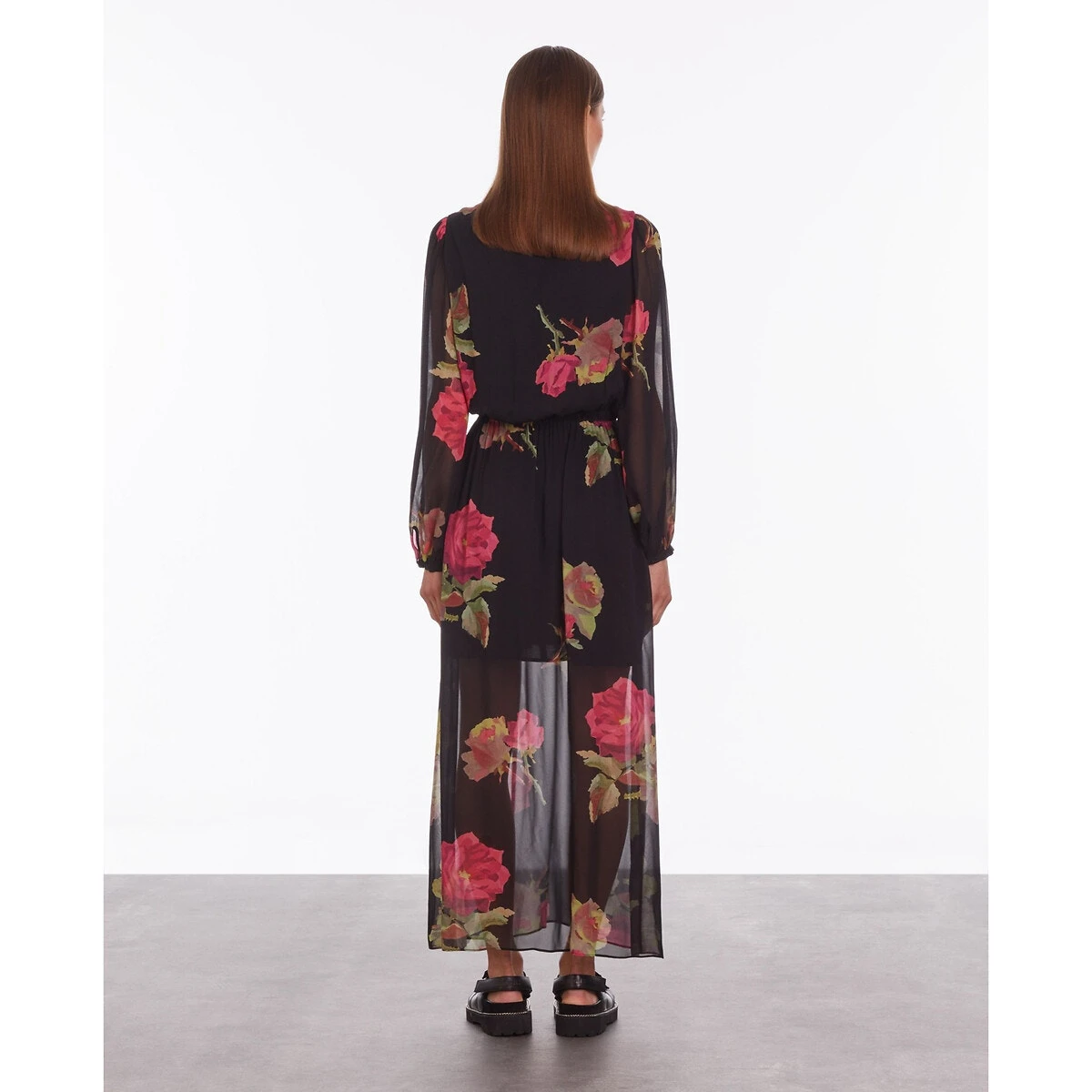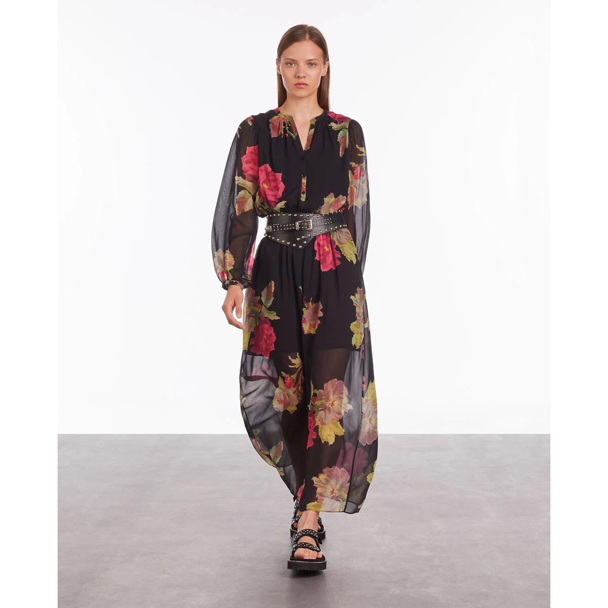 Robe longue voile, imprimé floral rose/noir THE KOOPLES